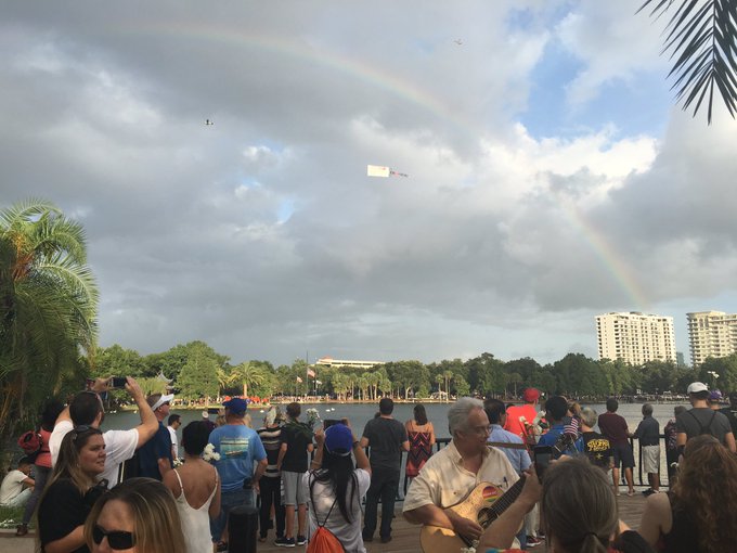 Wow, beautiful rainbow over at the Lake Eola vigil. @MyNews13